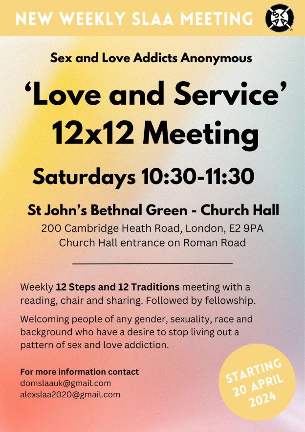 Welcoming people of any gender, sexuality, race and background who have a desire to stop living out a pattern of sex and love addiction.