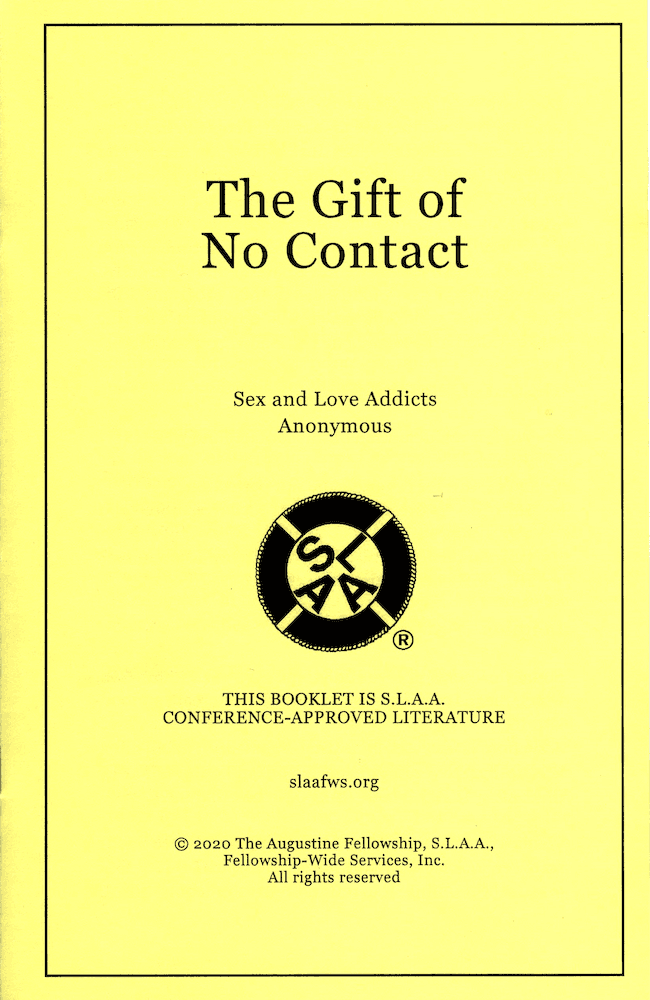 When we begin our journey in the S.L.A.A. program, we hear many terms that are unfamiliar. People in meetings speak of “qualifiers”, “top lines”, “bottom lines”, “triggers”. We don’t understand these terms, but when we hear the phrase “no contact”, we suspect we know what it means, and we are often frightened to consider it. After all, if we were able to refrain from contact with the people with whom we have painful, destructive relationships, we wouldn’t need this program! This booklet will explain the concept of “no contact” and why it is so valuable by answering the following questions: